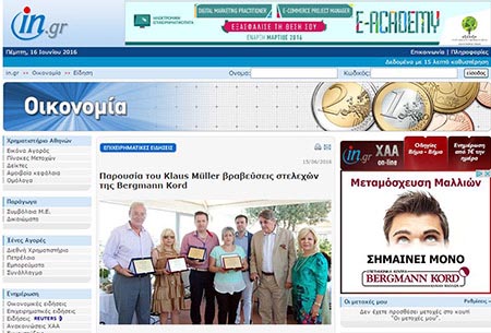 Με την ευκαιρία της έλευσης και προς τιμήν του κυρίου Müller παρατέθηκε δεξίωση στο εστιατόριο “La Veranda” του ξενοδοχείου Metropolitan, την Κυριακή 5 Ιουνίου 2016, κατά την διάρκεια της οποίας εκτός από τις τοποθετήσεις – παρουσιάσεις των Γερμανών προσκεκλημένων της BERGMANN Γερμανίας, προσφέρθηκε γεύμα σε συνεργάτες, δημοσιογράφους και ανθρώπους των media και, βεβαίως, στο σύνολο των στελεχών των επιστημονικών κέντρων της Bergmann Kord.