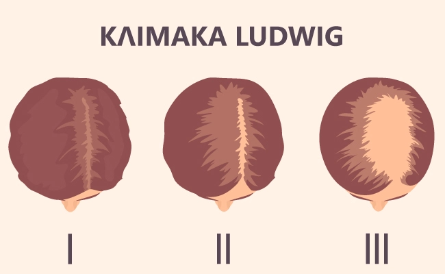 Αξιολογεί τη βαρύτητα της διάχυτης αραίωσης σε τρία στάδια στην κορυφή της κεφαλής.