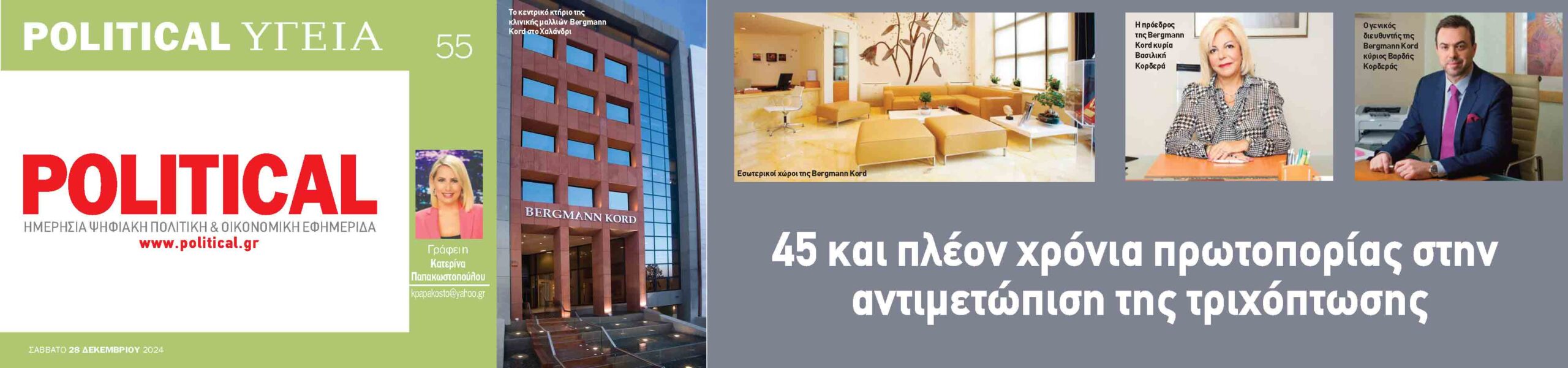 Η δημοσιογράφος Κυρία Κατερίνα Παπακωστοπούλου , ειδική στα θέματα Υγείας, φιλοξένησε στην εφημερίδα POLITICAL (28/12/2024) το Εταιρικό προφίλ της Κλινικής Μαλλιών Bergmann Kord.