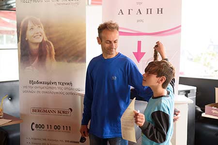 Με την ολοκλήρωση του συμβολικού περιπάτου «Pink the City» και για δύο τουλάχιστον ώρες μετά, η έμπειρη ομάδα της Κλινικής, υποδέχτηκε πλήθος κόσμου, ο οποίος πρόσφερε 20 εκατοστά από τα μαλλιά του, βάσει διαδικασίας εγκεκριμένων προδιαγραφών.
