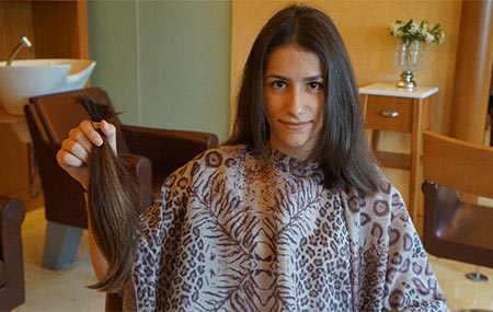 Δώρισε 20 εκατοστά από τα μαλλιά της ώστε να κατασκευαστούν περούκες οι οποίες θα προσφερθούν σε άπορους συνανθρώπους μας που πάσχουν από καρκίνο ή αλωπεκία.