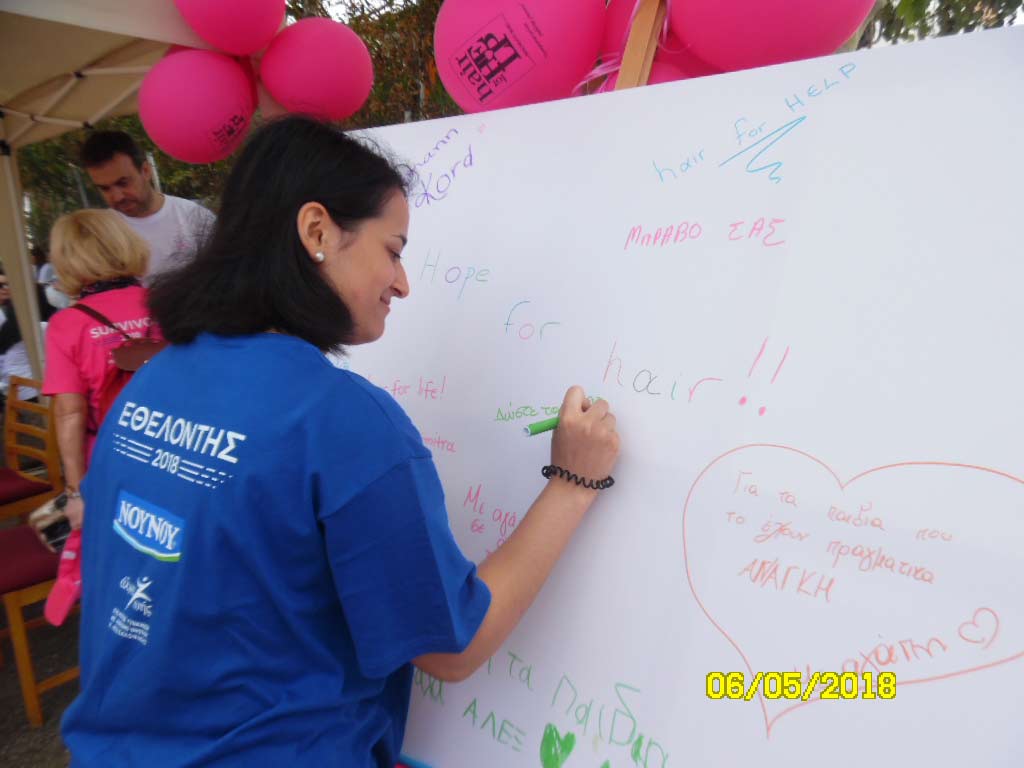 Οι πλέον συγκινητικές, βεβαίως, στιγμές ήταν αυτές τις έμπρακτης Συνεισφοράς των εθελοντών με την προσφορά 20 εκατοστών από τα μαλλιά τους προκειμένου να κατασκευαστούν περούκες, οι οποίες προσφέρονται δωρεάν στους άπορους, πάσχοντες από καρκίνο και αλωπεκία Συνανθρώπους μας.