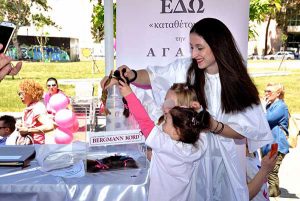 Με την ολοκλήρωση της συμβολικής πορείας, στον ειδικά διαμορφωμένο χώρο της Bergmann Kord, η έμπειρη ομάδα της Κλινικής, υποδέχτηκε πλήθος κόσμου, που πρόσφερε 20 εκατοστά από τα μαλλιά του.