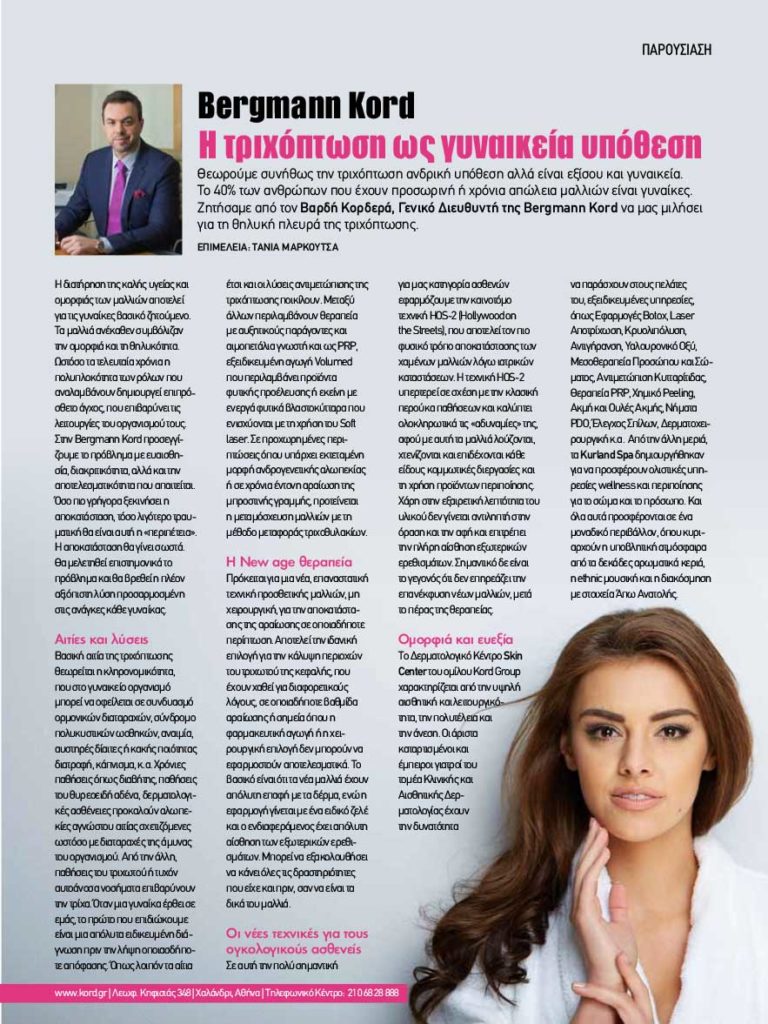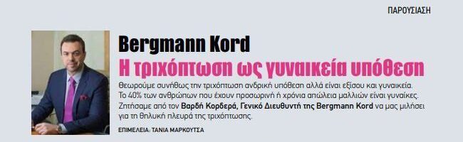 Θεωρούμε συνήθως την τριχόπτωση αντρική υπόθεση αλλά είναι εξίσου και γυναικεία. Το 40% των ανθρώπων που έχουν προσωρινή ή χρόνια απώλεια μαλλιών είναι γυναίκες. Ζητήσαμε από τον Βαρδή Κορδερά, Γενικό Διευθυντή της Bergmann Kord να μας μιλήσει για τη θηλυκή πλευρά της τριχόπτωσης.