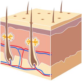 Das Haar ist eine komplizierte Bildung, die aus der Haarwurzel und dem aus der Hautoberfläche herausragenden Haarschaft besteht. Die Haarwurzel ist im Haarfollikel umschlossen, steckt schräg in der Haut und endet mit einer zwiebelförmigen Anschwellung, die Haarzwiebel genannt wird.