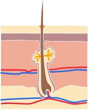 An der Basis der Haarfollikel liegen die Zellen der dermalen Papille, die vollständige biologische Strukturen und unerlässlich für das Haar sind, denn sie enthalten Kapillargefäße, die dem Haar Nährstoffe vom Blut zuführen.