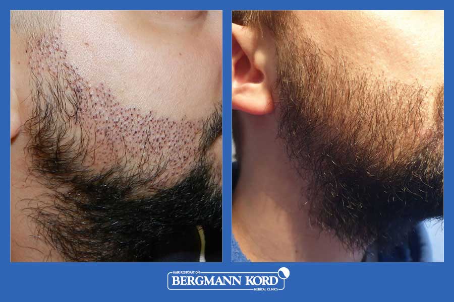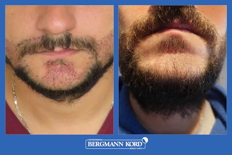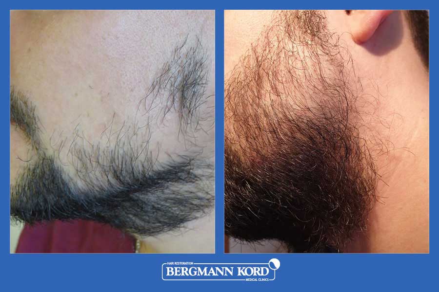 Beard implantation at Bergmann Kord is performed almost always using the FUE transplantation method and is based on the individual extraction of hair follicles, which are transferred one by one from the donor area to the points where thinning appears in the beard.